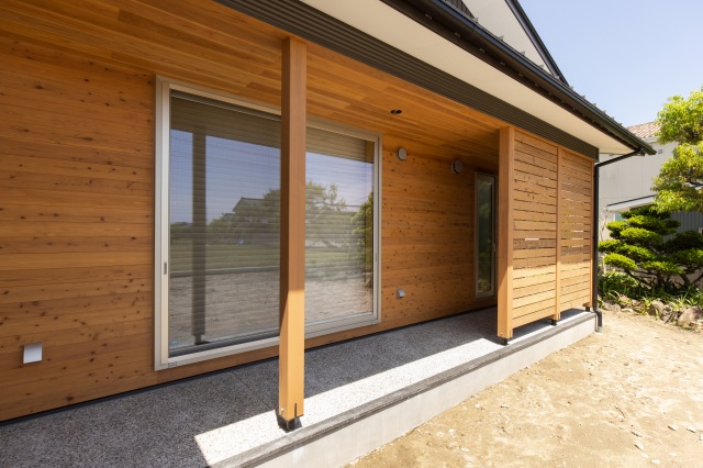 一つ目は、屋根のある半屋外の「ガンギテラス」です。内部と外部を緩やかにつなげるその視覚的効果から生活に落ち着きが生れます。また、除雪道具や庭作業道具の一次的な置き場にも使えるという利便性もあり、板張り外壁の保護の効果も大きく、この住まいにとっては非常に存在価値の大きな要素となっています。